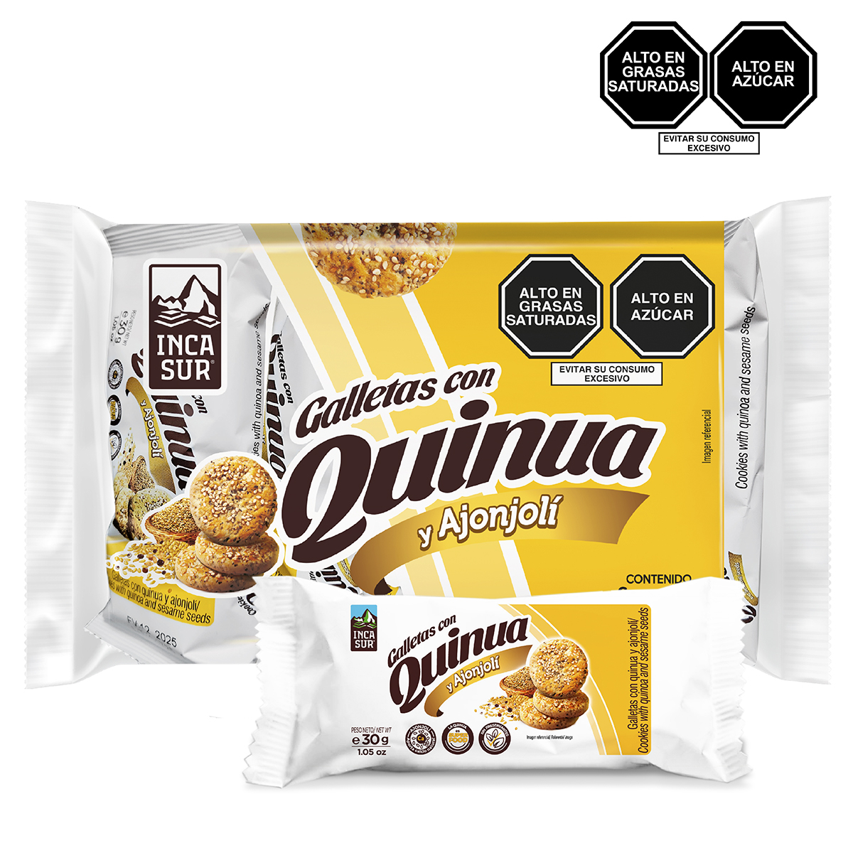 Deliciosas Galletas elaboradas con quinua y semillas de ajonjolí, un snack rico y nutritivo para cualquier momento del día. Prueba Galletas IncaSur en todas sus variedades.