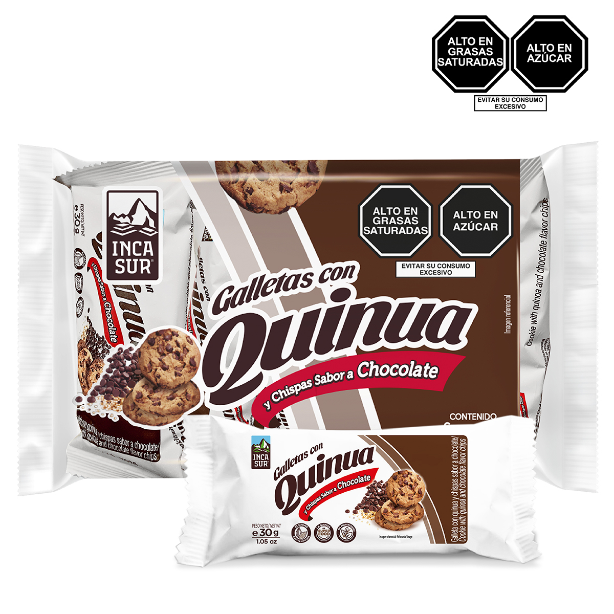Deliciosas Galletas elaboradas con quinua y chispas sabor a chocolate, un snack rico y nutritivo para cualquier momento del día. Prueba Galletas IncaSur en todas sus variedades.